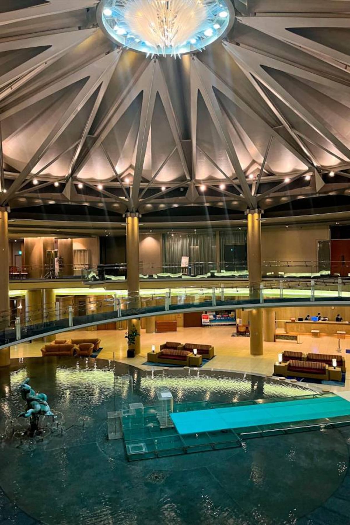 Al tener un difícil acceso y conexión con la ciudad, el hotel también cuenta con varios restaurantes, incluido uno en la última planta y con una vista de 360 grados de la bahía, además de un onsen -baño de aguas termales-, spa, gimnasio, tienda de conveniencia y piscina, con el fin de que los huéspedes no tengan que desplazarse a la ciudad si no lo desean.