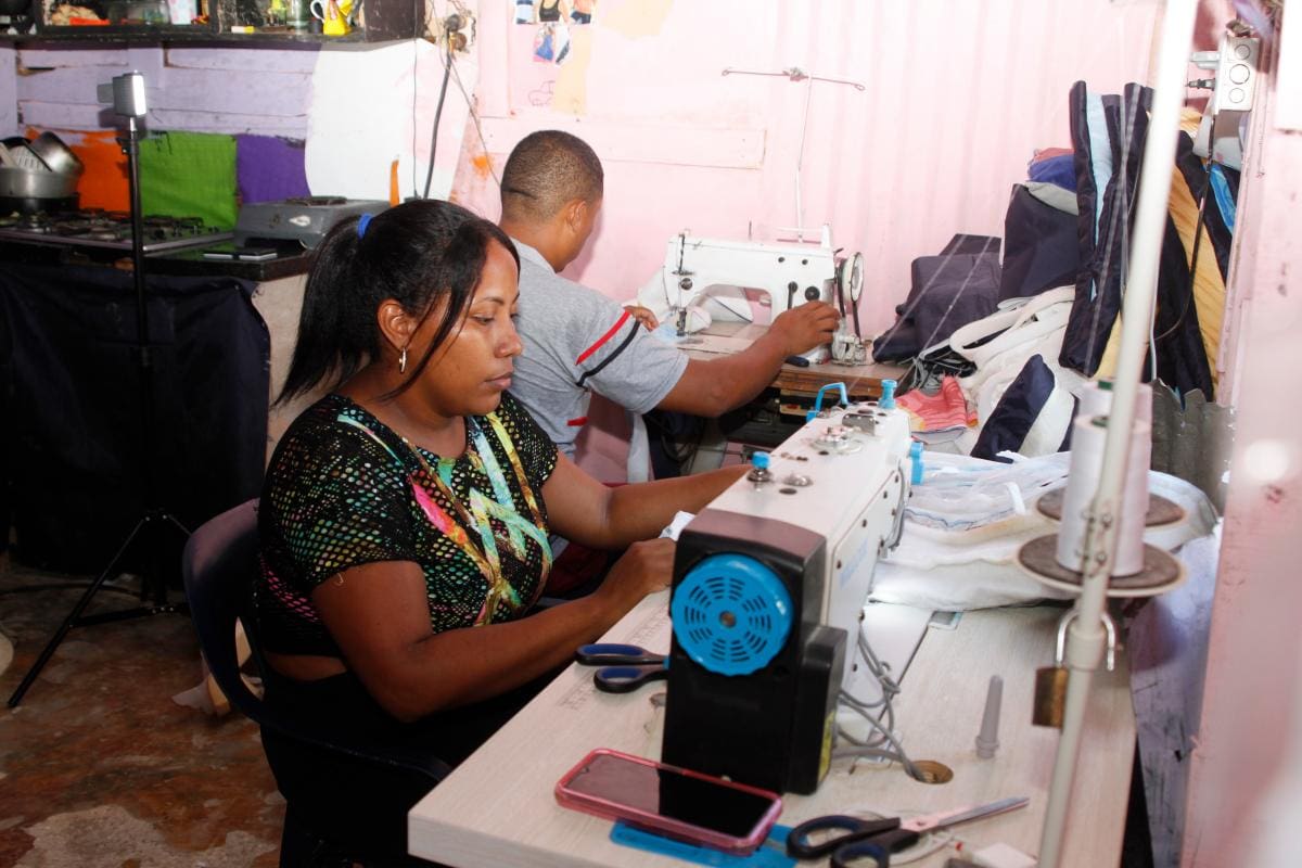 Heidi Sanmartín Rodríguez y Yolfrán Echenagucia, dos migrantes venezolanos, emprendieron con una fábrica de almohadas en Cartagena. //Foto: Óscar Díaz.