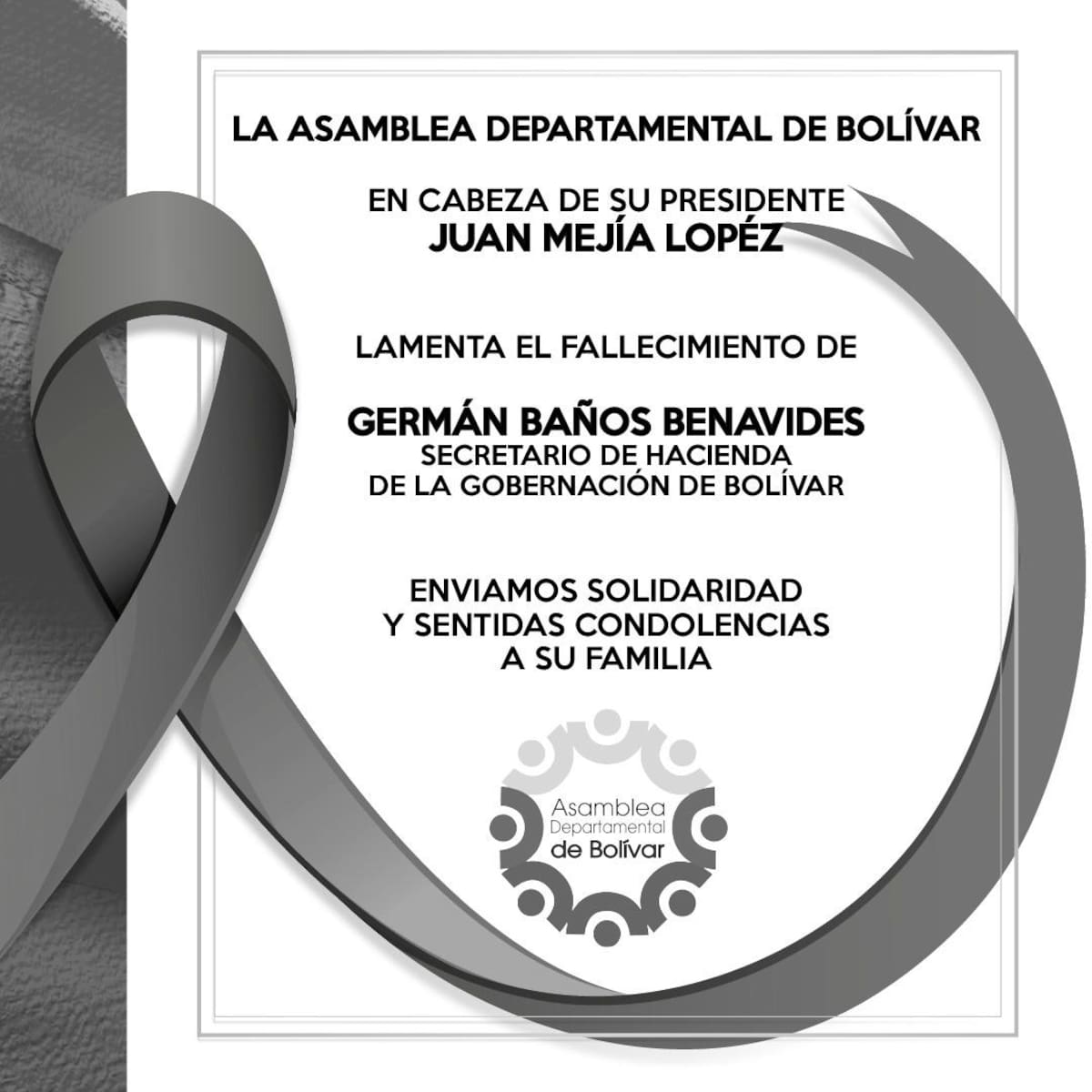 Por su parte, el equipo de la Gobernación de Bolívar en cabeza de Vicente Blel, se pronunció sobre la dolorosa noticia, con las siguiente palabras: