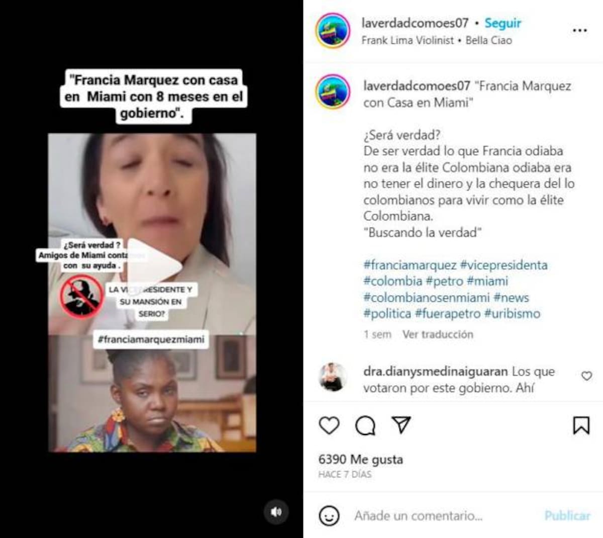 Después de ser víctima de ataques racistas y de soportar críticas por sus viajes en helicóptero hasta su lugar de residencia en Cali, ahora Márquez atraviesa una campaña de desinformación que le endilga ser la dueña de varias propietarias en Miami, Florida. Esto relató Nelly Judith Parra Enciso, una usuaria de TikTok que le “había contado el propietario de una tienda de cerámicas italianas, del que Francia Márquez sería una de sus mejores clientes”.