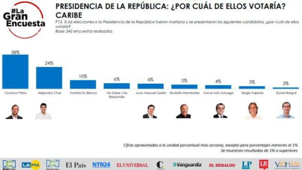 A esta pregunta se enfrentaron 242 residentes de la región Caribe y estas son las tres opciones con mayor intención de voto: