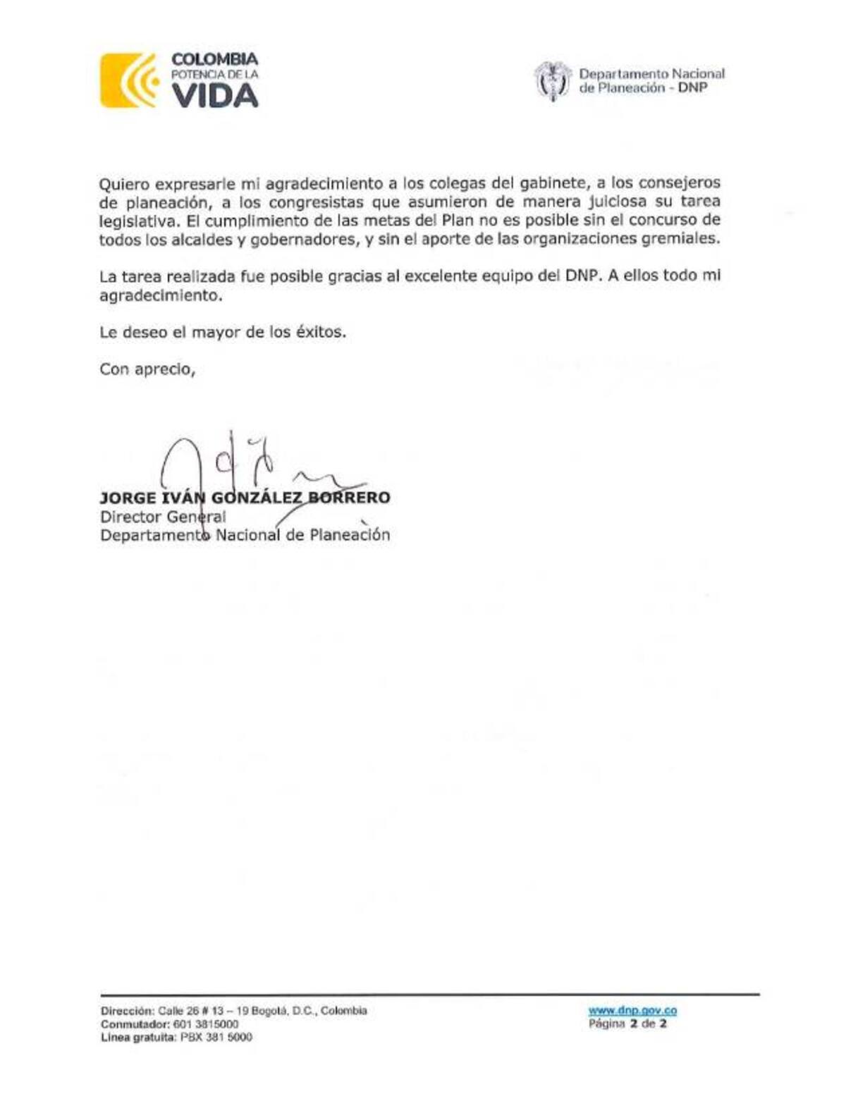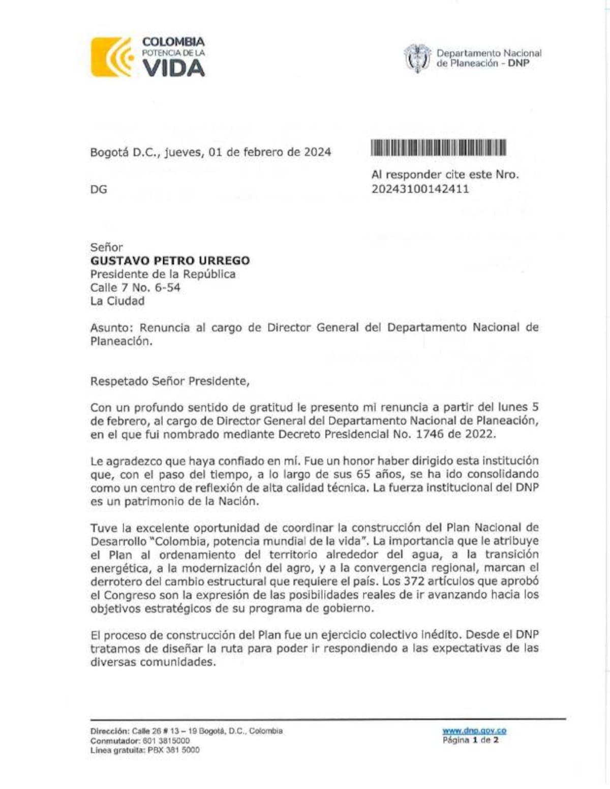 Se trata del director del Departamento de Planeación Nacional (DNP), Jorge Iván González, quien renunció a su cargo. Su salida se hará de manera oficial el lunes 5 de febrero.