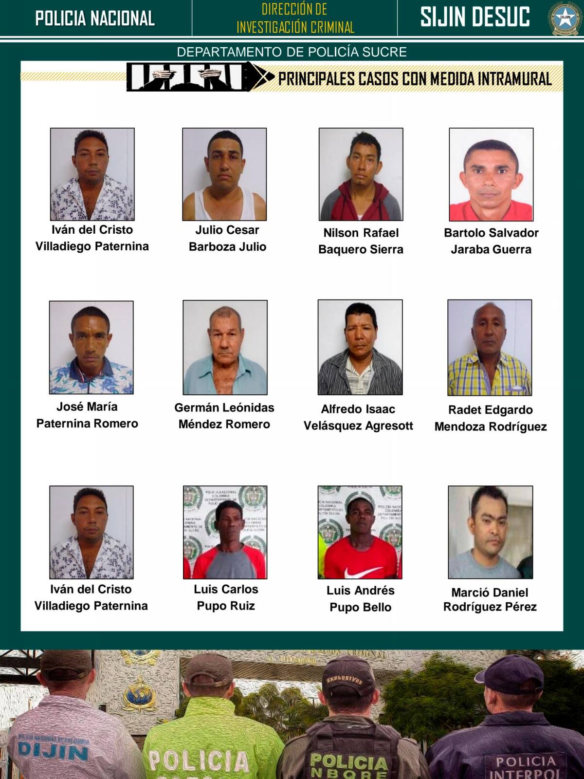 A través de la acción ejecutada en las localidades de Corozal, San Onofre, Majagual, Sincé, San Marcos y Sincelejo, las autoridades lograron la captura de 30 hombres, 25 de los cuales fueron enviados a la cárcel, a uno le dieron domiciliaria y cuatro quedaron libres.