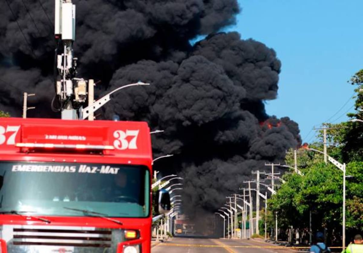 El percance ocurrió en horas de la madrugada, en un depósito de combustible, en cuyas labores de extinción ha fallecido ya un bombero. La emergencia es mayor porque provocó un derrame en el río Magdalena, lo que obligó a suspender el servicio de agua potable en varios sectores de la ciudad y poblaciones aledañas. Lea aquí: Incendio en Barranquilla: un bombero muerto y la ciudad en emergencia