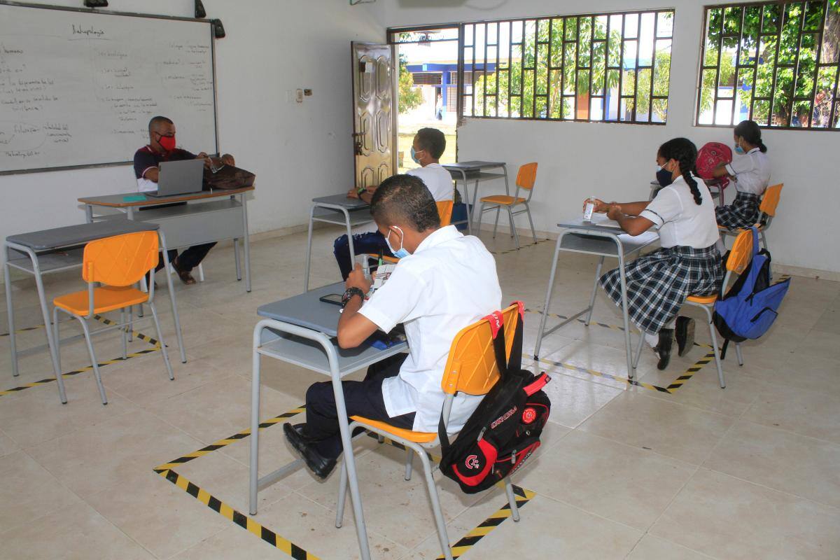 Me hacía falta estar en el salón de clases con mis compañeros y profesores, no es lo mismo aprender en la casa a través de una pantalla que en el colegio de manera presencial. Me siento contenta de estar aquí, todos nos cuidamos y cumplimos con los protocolos de bioseguridad”. De esa forma respondió la joven Elianis Martínez, estudiante de 10 grado de la Institución Educativa Técnica Industrial Don Bosco, en el municipio de Arjona, cuando la ministra de Educación de Colombia, María Victoria Angulo, le preguntó cómo se sentía tras dos semanas de haber regresado a las aulas.