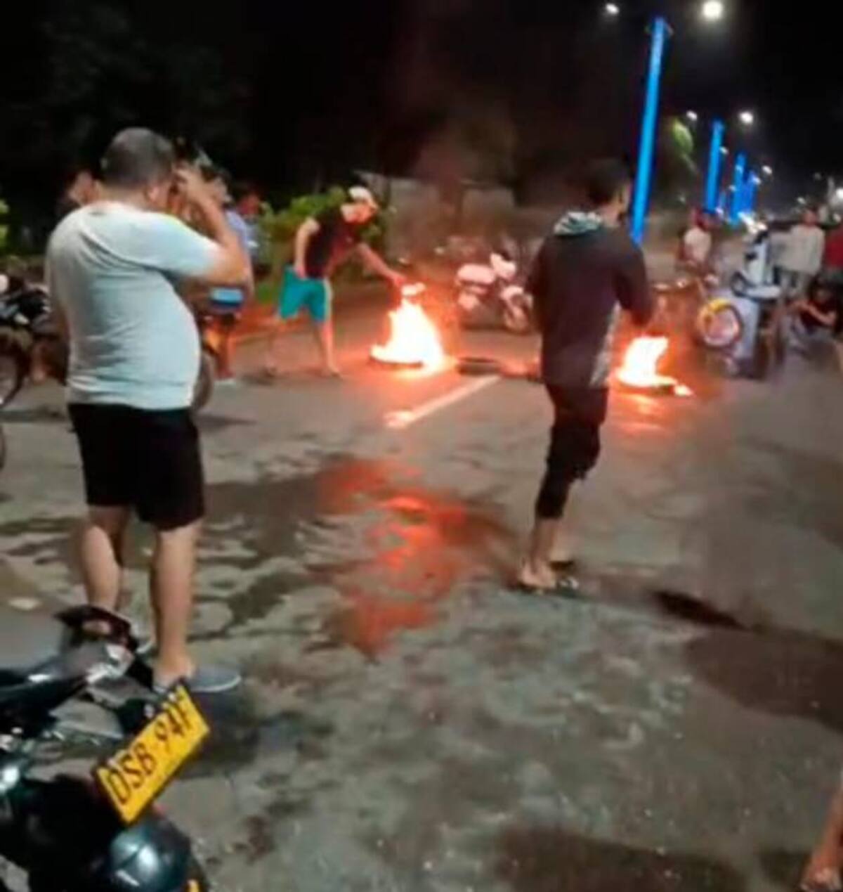 Bloqueos en Turbaco por falta de energía eléctrica. //Cortesía.