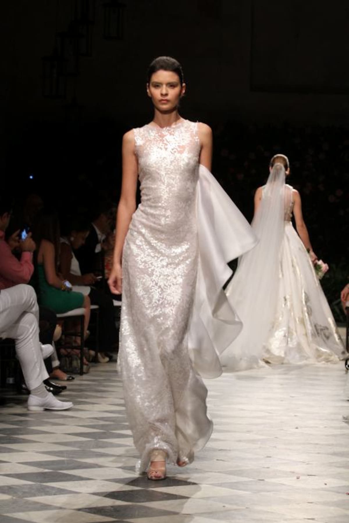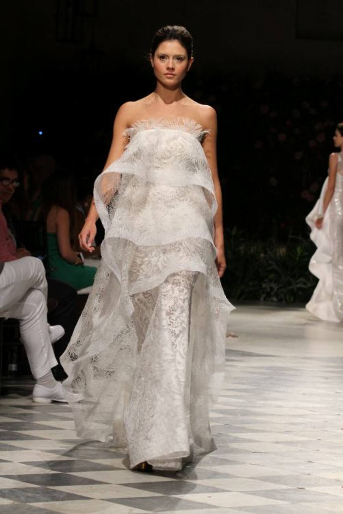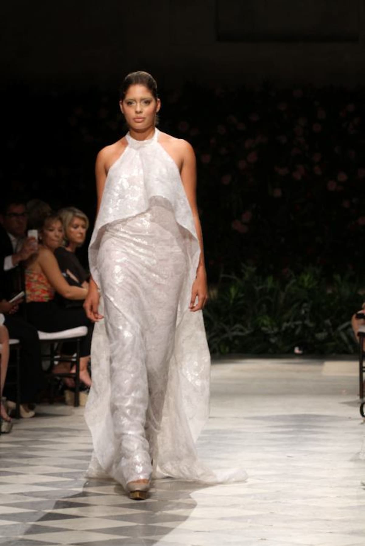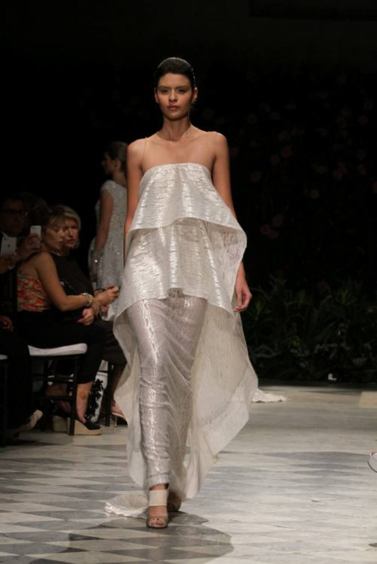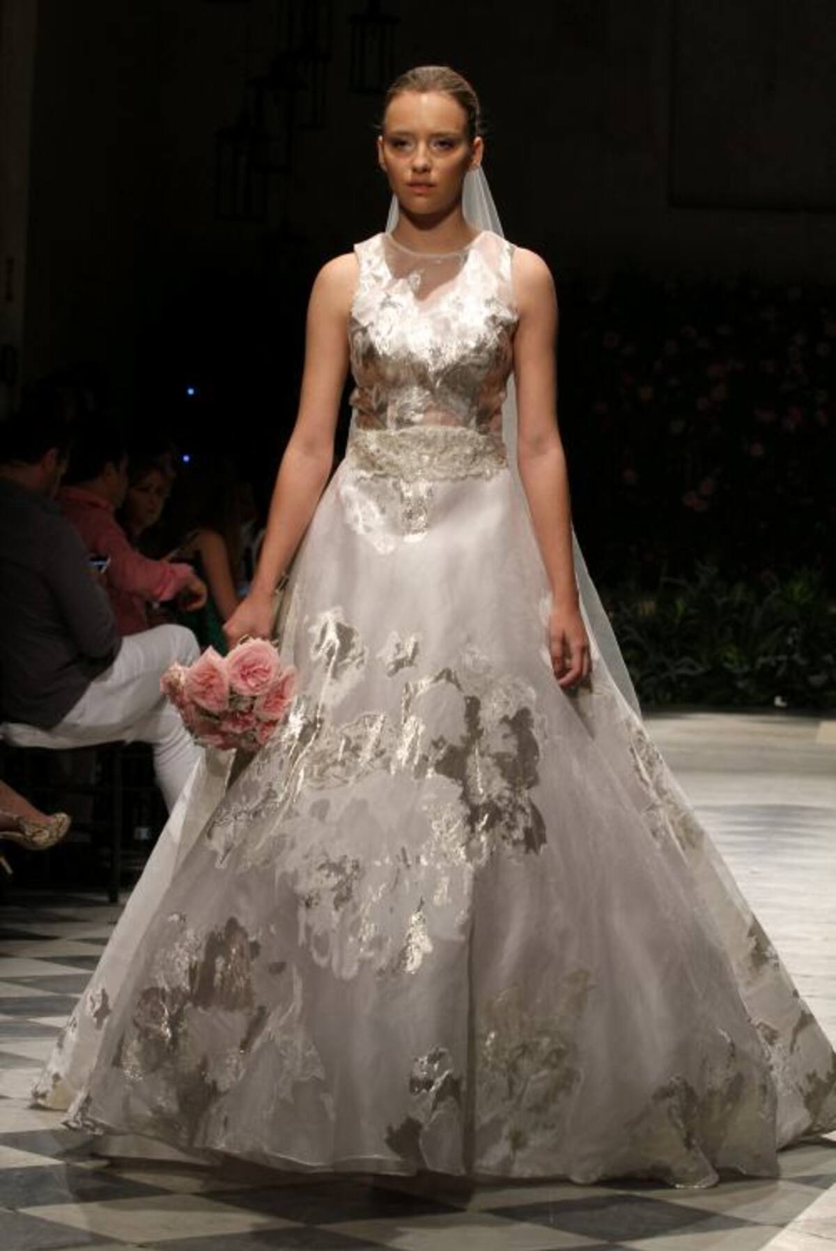 La capilla del Sofitel Santa Clara iluminada tenuemente con lámparas de mimbre tenía un ambiente romántico. Al fondo del salón un backdrop lleno de flores complementaba la escena ideal para recibir a Silvia Tcherassi quien presentaba por primera vez al mundo sus novias 2016.Y allí, en ese recinto histórico, en el marco del Cartagena Bridal Week, Silvia encantó con veinte propuestas de ensueño en blanco, dorado, plateado y especialmente con un vestido algo irreverente, lleno de labios rojos, con el que cerró la presentación.En esta oportunidad las telas francesas y suizas escogidas por la diseñadora no pudieron ser más hermosas. Silvia en esta nueva propuesta combinó a la perfección el blanco y dorado, y el blanco con plateado, con los que logró efectos luminosos que permiten que una novia brille más. Encajes, pequeñas lentejuelas, muchos volantes, cortes en bandeja y énfasis en las mangas- en algunos vestidos, muy amplias, estilo años 60- se vieron en esta pasarela de Silvia, que contó con gran asistencia de público cartagenero.Y es que la diseñadora pensó esta colección para diferentes tipos de novias, desde la que se casa muy jóven, la que se ha casado varias veces y la que disfruta la vida intensamente, y quiere vestirse diferente.Y también complació a las novias que no quieren el tradicional vestido blanco, que quieren color y por eso en muchos de sus diseños se ven hilos dorados y plateados que le dan luz sin quitarle elegancia al vestido.También pensó en que en estos momentos los vestidos de novia no deben quedar guardados por siempre en un armario así que sus diseños, si se quita el velo, pueden ser usados para otras ocasiones formales.Este “debut”, de Silvia fue un privilegio para la ciudad, pues esta colección se presenta solo mañana en un desfile que la diseñadora barranquillera tiene en Miami.