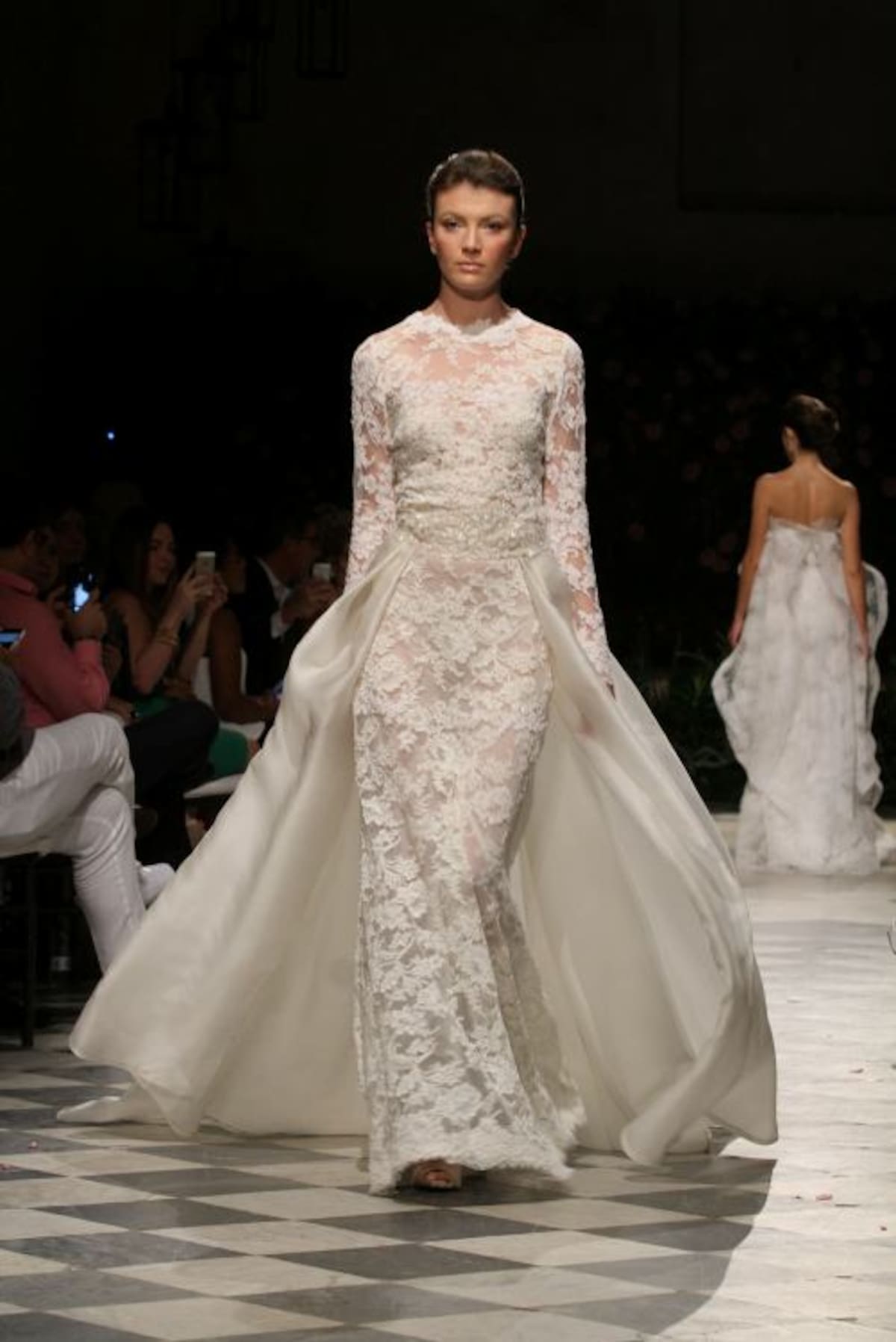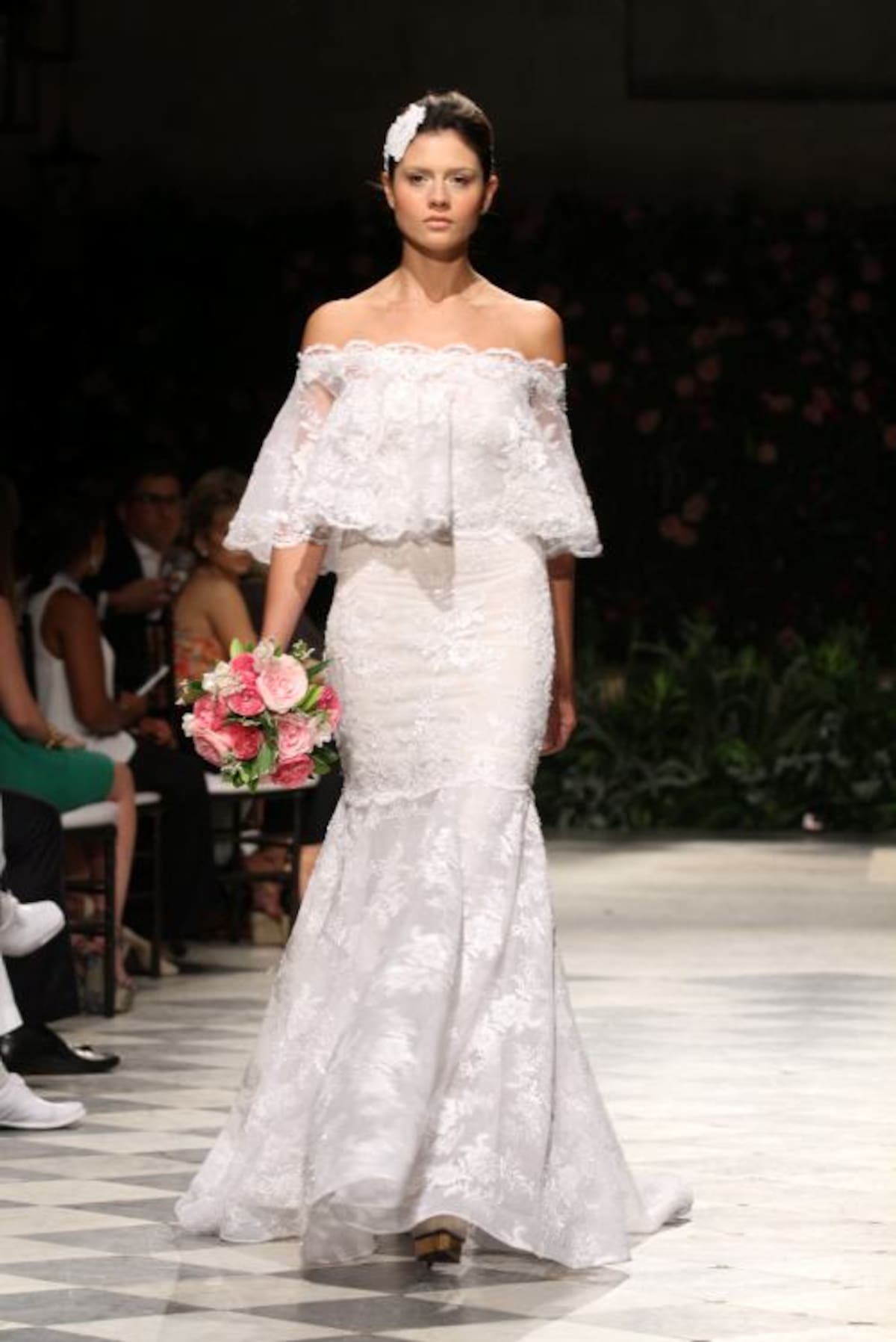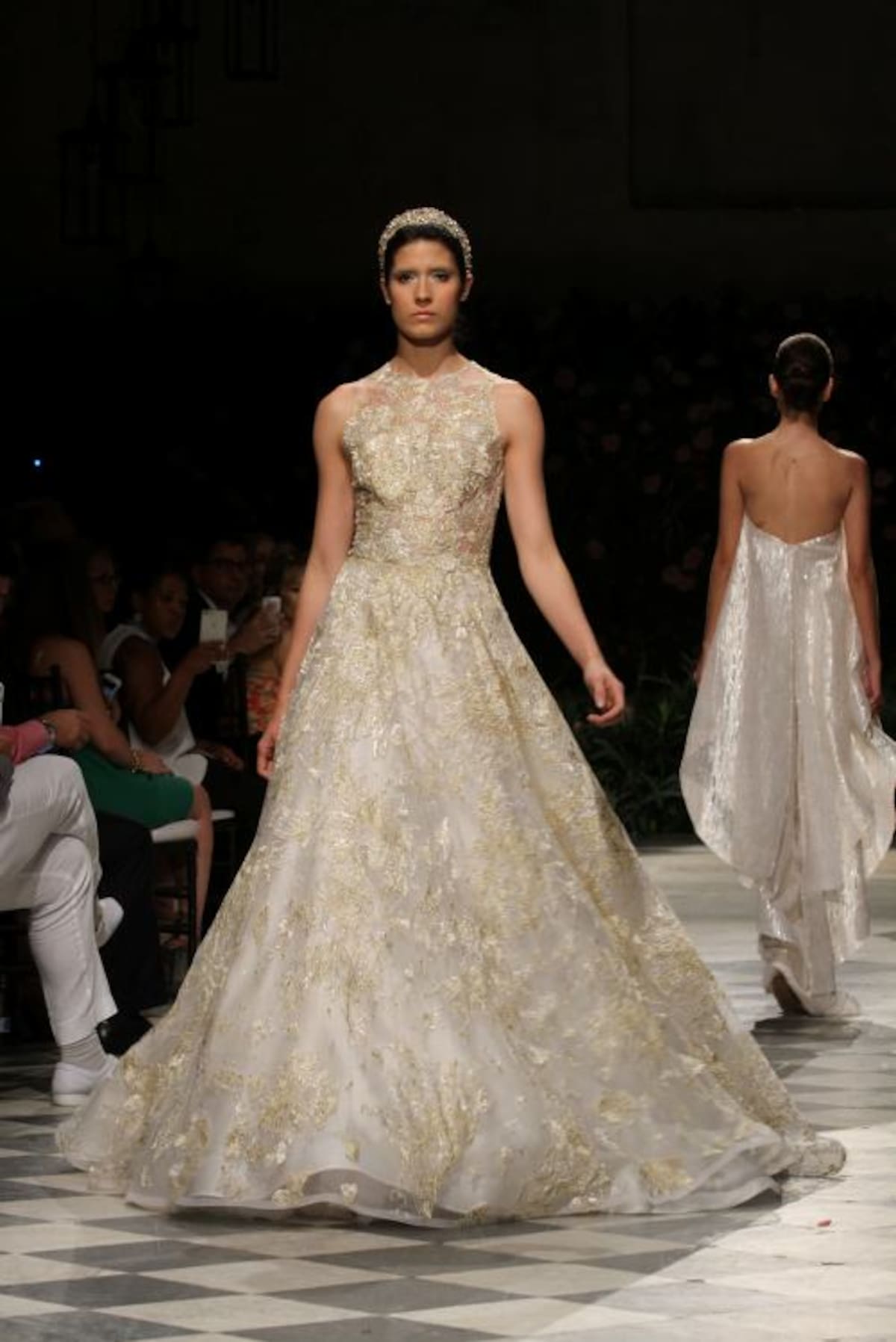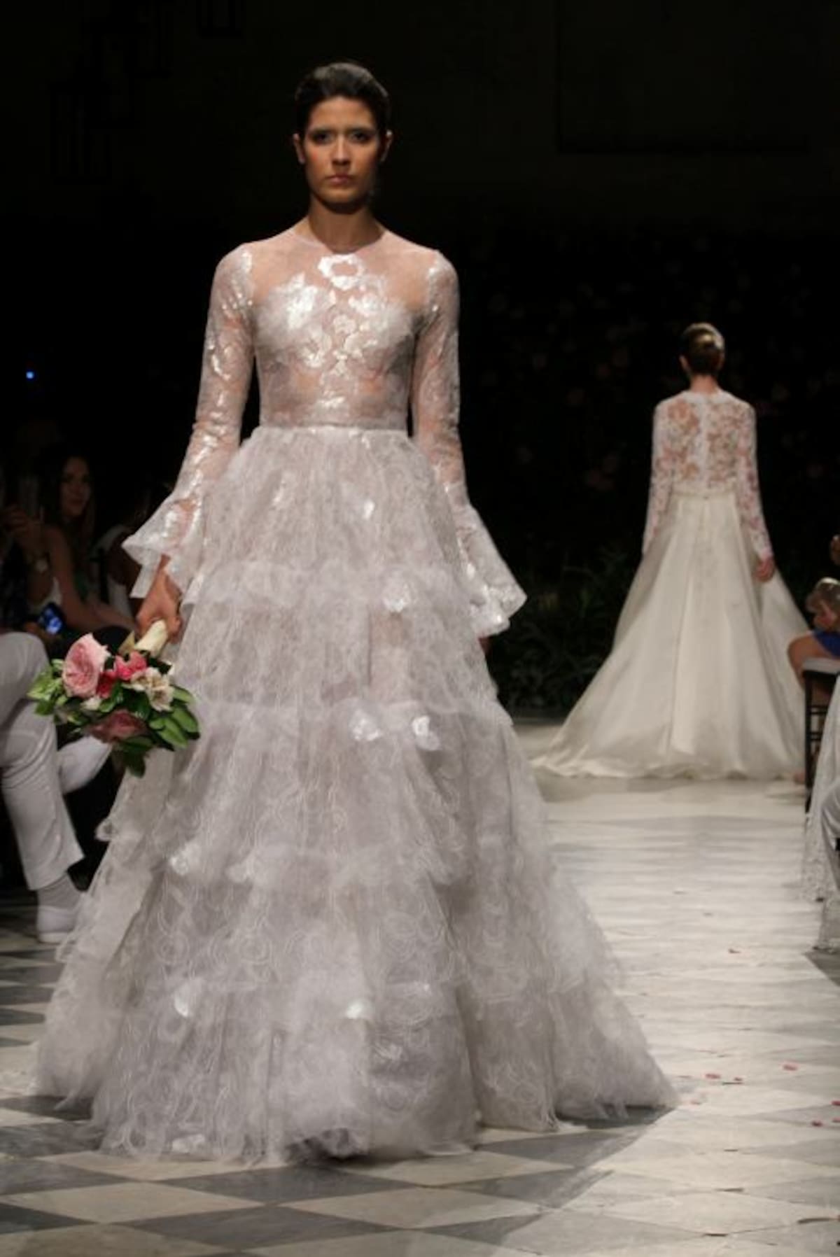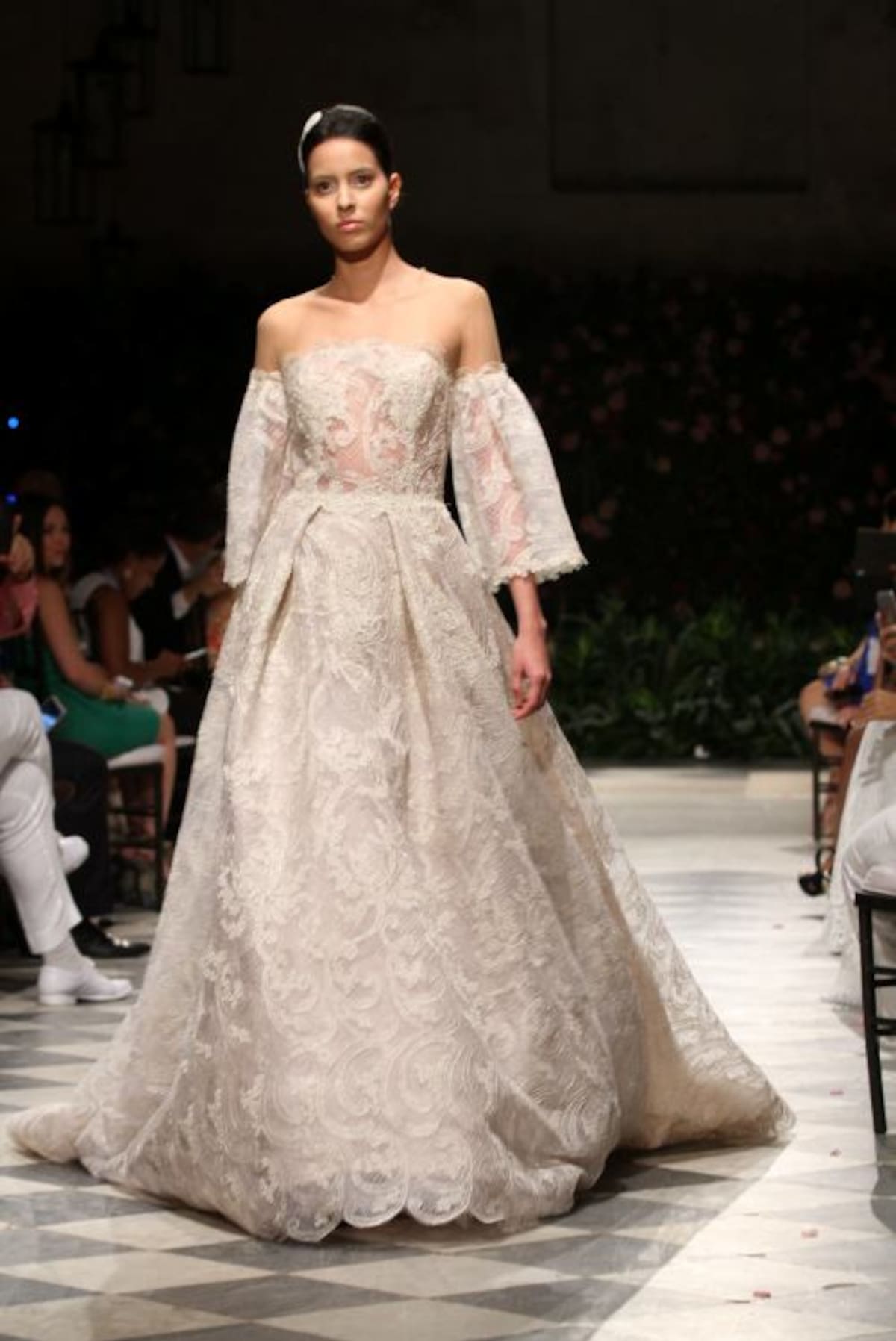 La capilla del Sofitel Santa Clara iluminada tenuemente con lámparas de mimbre tenía un ambiente romántico. Al fondo del salón un backdrop lleno de flores complementaba la escena ideal para recibir a Silvia Tcherassi quien presentaba por primera vez al mundo sus novias 2016.Y allí, en ese recinto histórico, en el marco del Cartagena Bridal Week, Silvia encantó con veinte propuestas de ensueño en blanco, dorado, plateado y especialmente con un vestido algo irreverente, lleno de labios rojos, con el que cerró la presentación.En esta oportunidad las telas francesas y suizas escogidas por la diseñadora no pudieron ser más hermosas. Silvia en esta nueva propuesta combinó a la perfección el blanco y dorado, y el blanco con plateado, con los que logró efectos luminosos que permiten que una novia brille más. Encajes, pequeñas lentejuelas, muchos volantes, cortes en bandeja y énfasis en las mangas- en algunos vestidos, muy amplias, estilo años 60- se vieron en esta pasarela de Silvia, que contó con gran asistencia de público cartagenero.Y es que la diseñadora pensó esta colección para diferentes tipos de novias, desde la que se casa muy jóven, la que se ha casado varias veces y la que disfruta la vida intensamente, y quiere vestirse diferente.Y también complació a las novias que no quieren el tradicional vestido blanco, que quieren color y por eso en muchos de sus diseños se ven hilos dorados y plateados que le dan luz sin quitarle elegancia al vestido.También pensó en que en estos momentos los vestidos de novia no deben quedar guardados por siempre en un armario así que sus diseños, si se quita el velo, pueden ser usados para otras ocasiones formales.Este “debut”, de Silvia fue un privilegio para la ciudad, pues esta colección se presenta solo mañana en un desfile que la diseñadora barranquillera tiene en Miami.