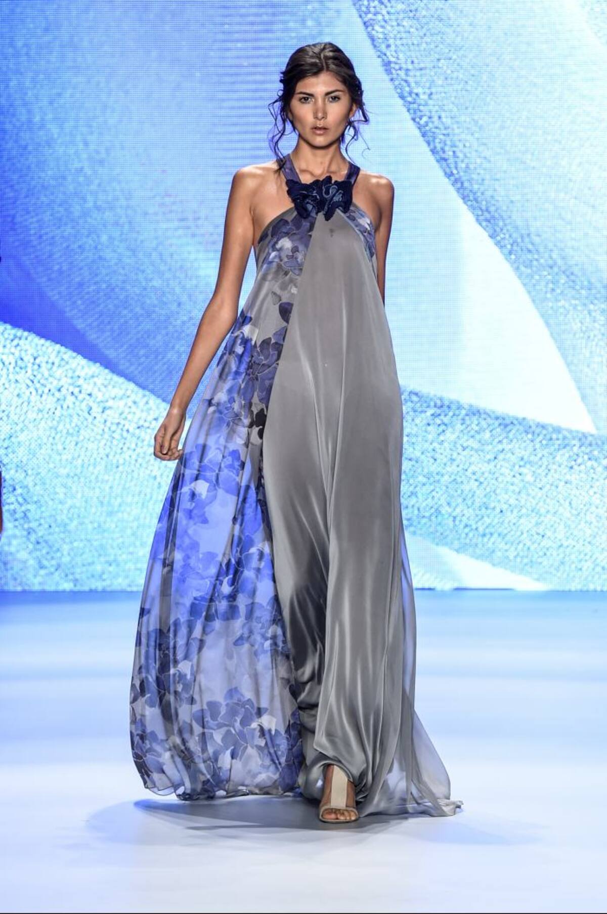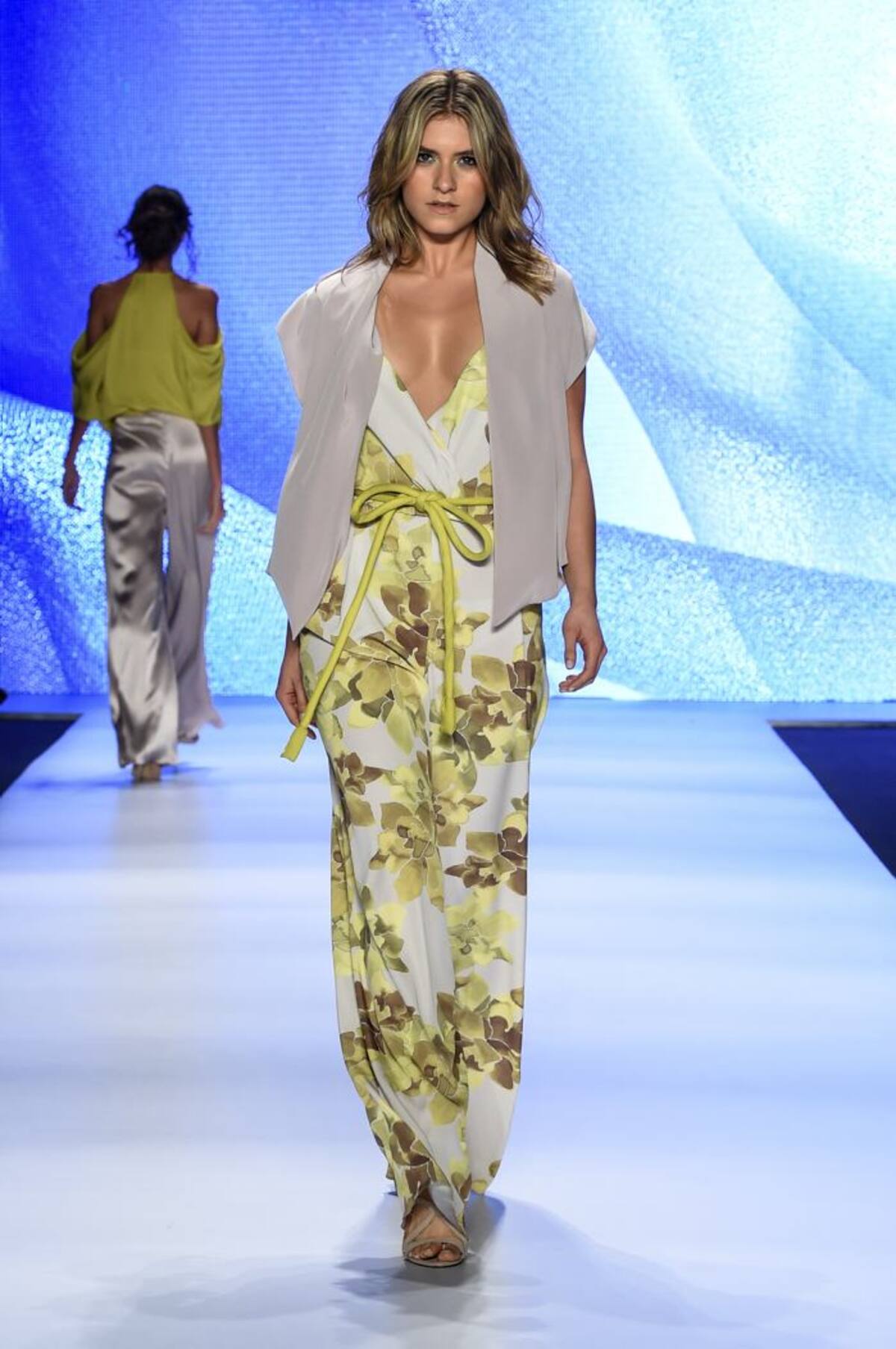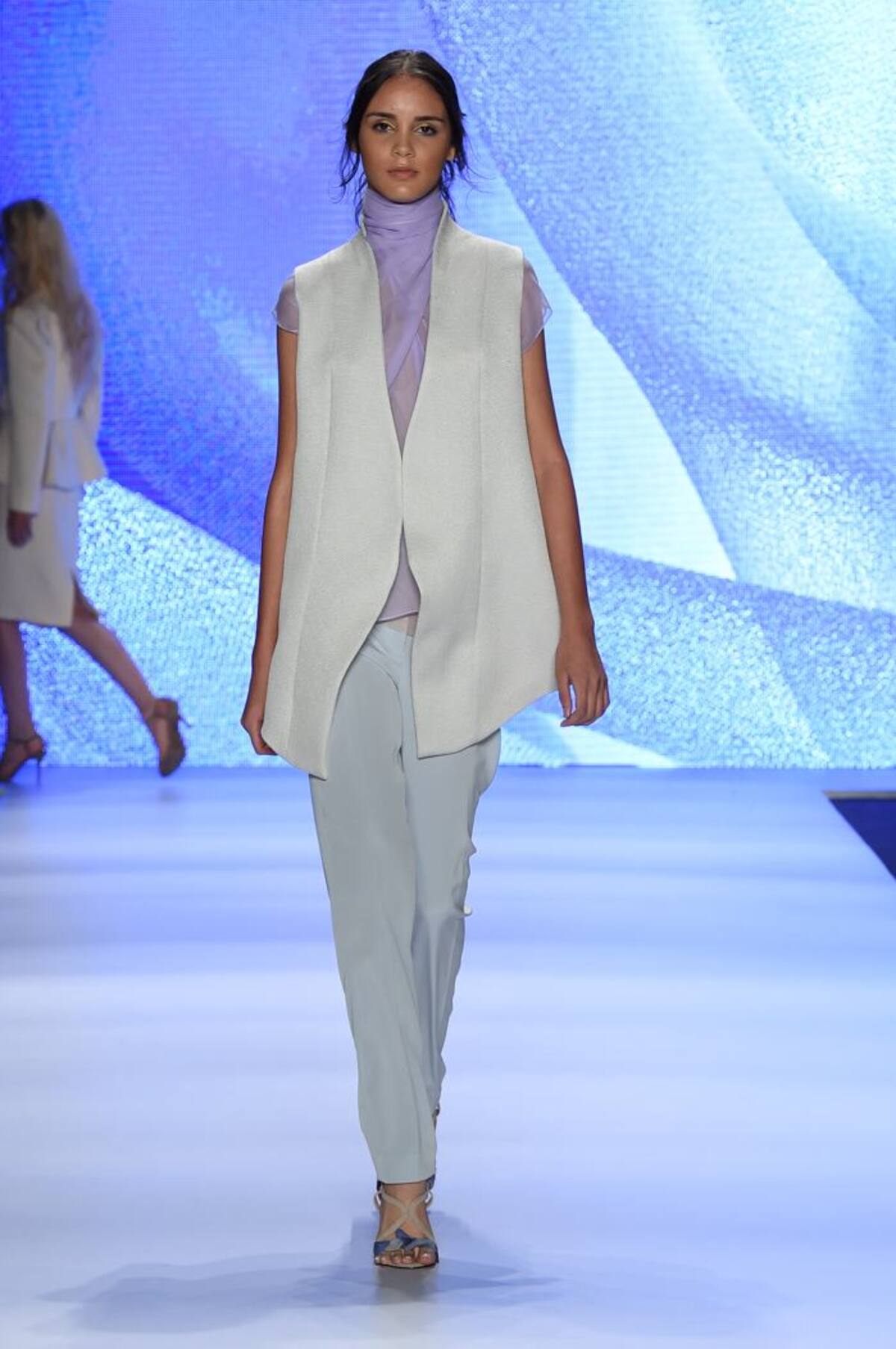 Esta joven diseñadora, que tiene entre sus clientes a la esposa del presidente, María Clemencia de Santos, trabajó pantalones amplios sin exagerar, faldas estilo tulipán, vestidos largos acompañados por capas sueltas y enterizos.