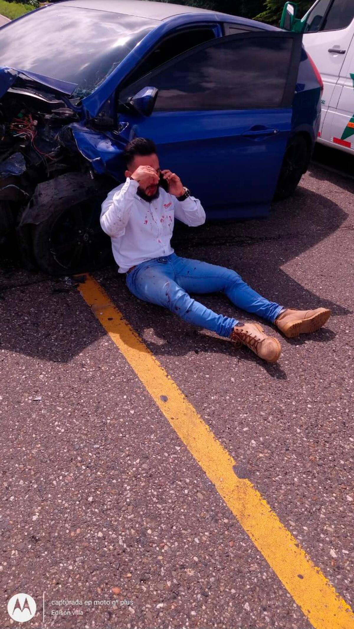 Un automóvil azul, marca Hyundai y de placas MXN-827, de Barranquilla, chocó contra otro carro, de color blanco, y a ambos se les destruyó la parte delantera. Hasta el momento, las autoridades no han reportado si hubo heridos de gravedad en el impacto, pero en videos que circulan en redes sociales se ve a un hombre en el piso quejándose de dolor.