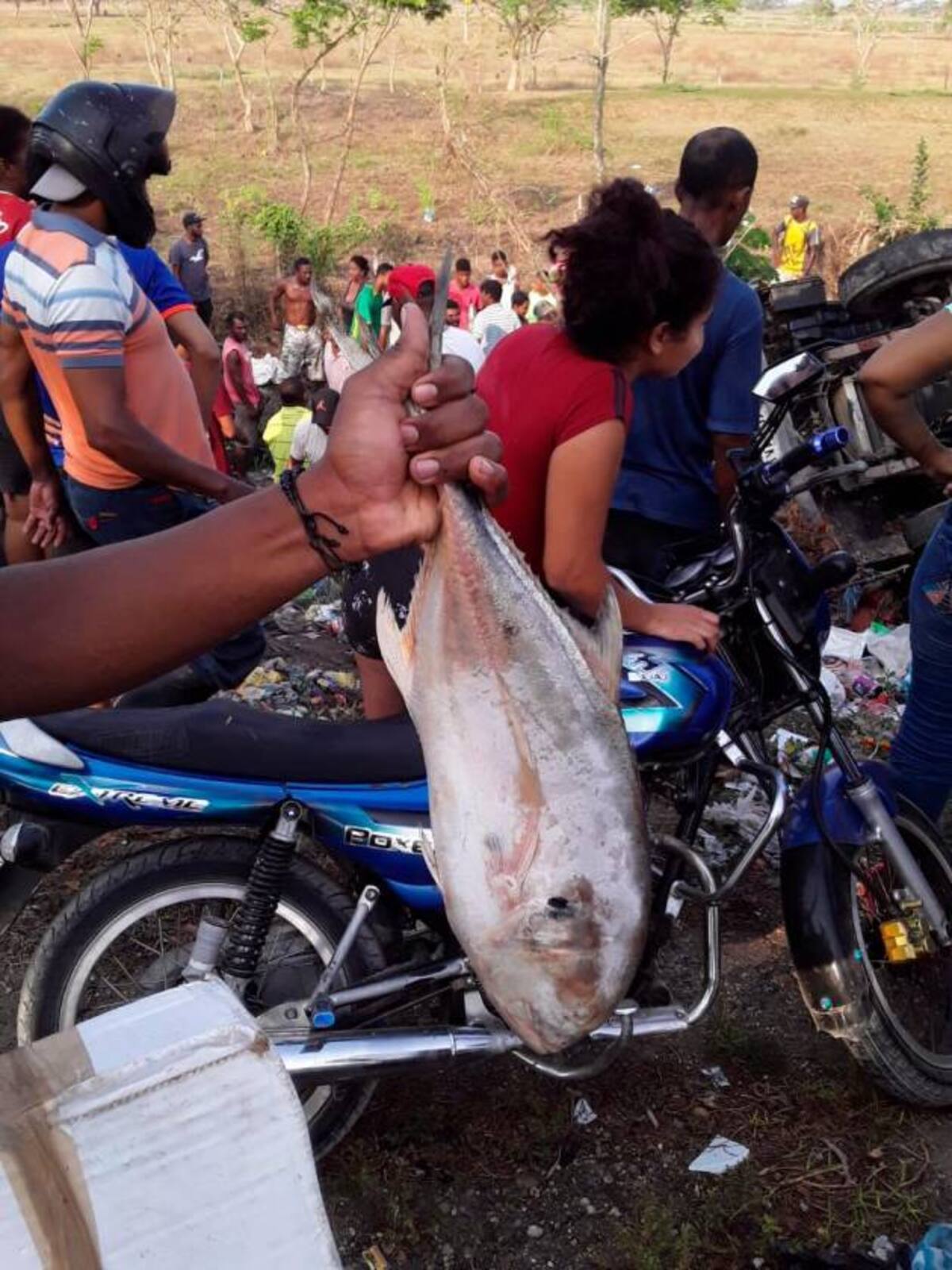El vehículo venía cargado de pescado y tan pronto las comunidades cercanas advirtieron el hecho la aglomeración no se hizo esperar y saquearon la mercancía.