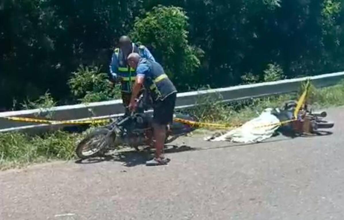 La víctima mortal vestía jean azul y suéter a rayas horizontales. Murió sobre su moto y allí lo reconocieron algunos habitantes de Pasacaballos. Su identidad está por establecer.