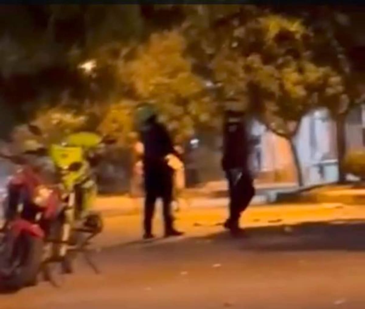 En la grabación, hecha con un celular en la noche del pasado martes 12 de marzo, se ve a dos patrulleros de la Policía Metropolitana a un lado de su moto y enfrentando a un grupo de jóvenes.