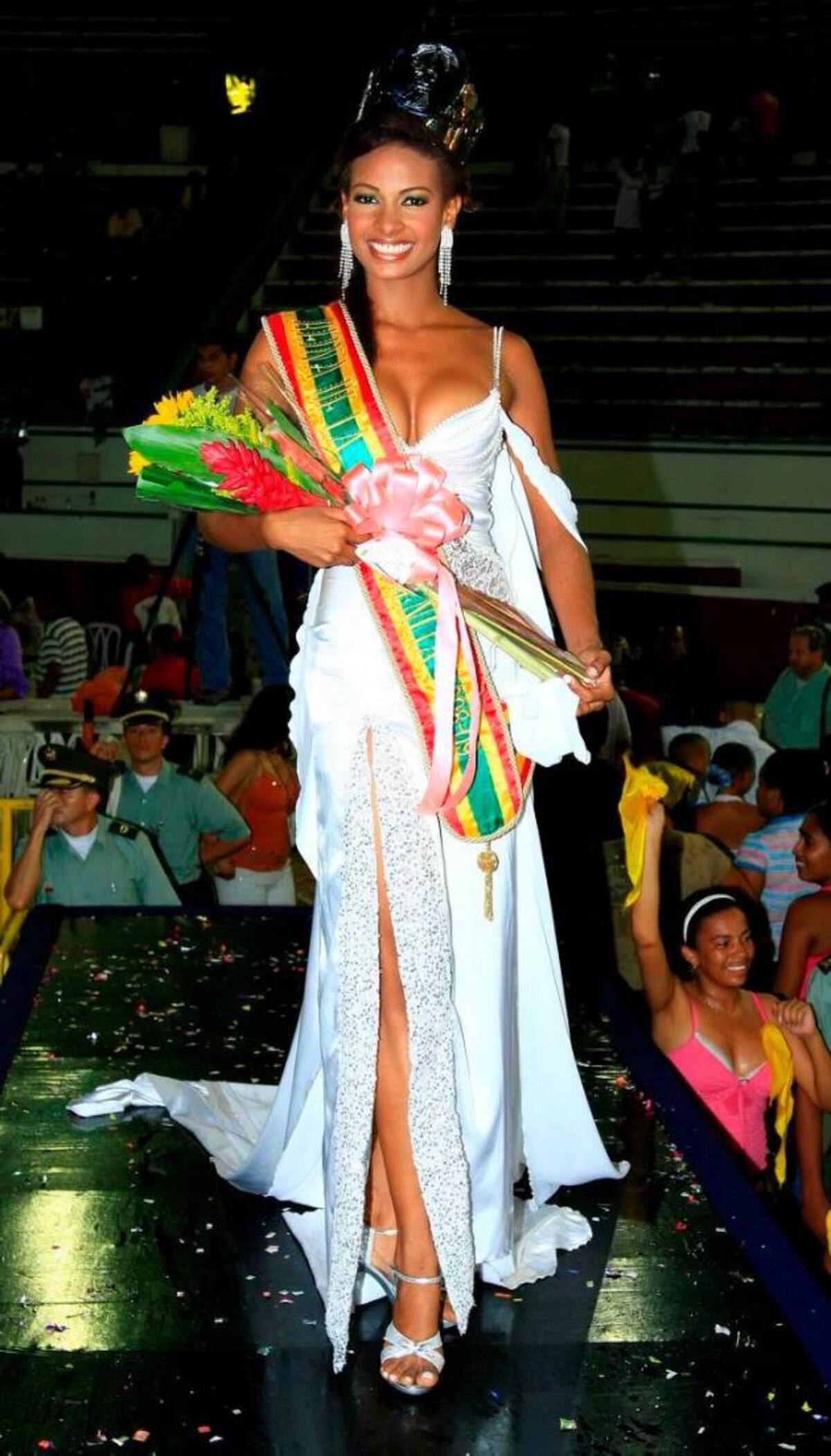 Mientras todos la proclamaban haciendo retumbar la Plaza de Toros, ella estaba ahí de pie, con su 1.75 de estatura, 55 kilos, ojos brillosos y la sonrisa casi congelada, soportando una fiebre que rozaba los 38 grados y otros síntomas de resfriado. A varios kilómetros de distancia, su cómplice de aventura se perdía el espectacular momento sentado en la tasa de un baño prestado, víctima del manojo de nervios que se había apoderado de su cuerpo.