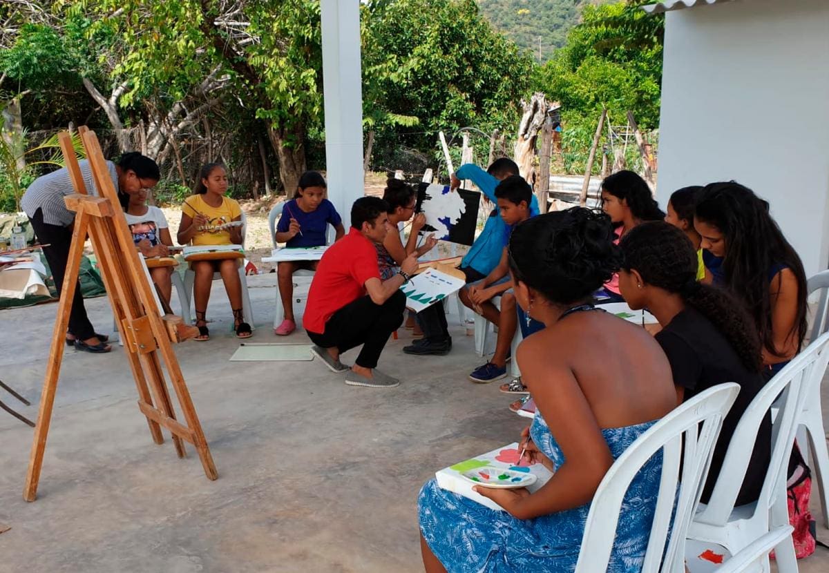 Perkys impartiendo clases a los niños de Aguas Blancas.