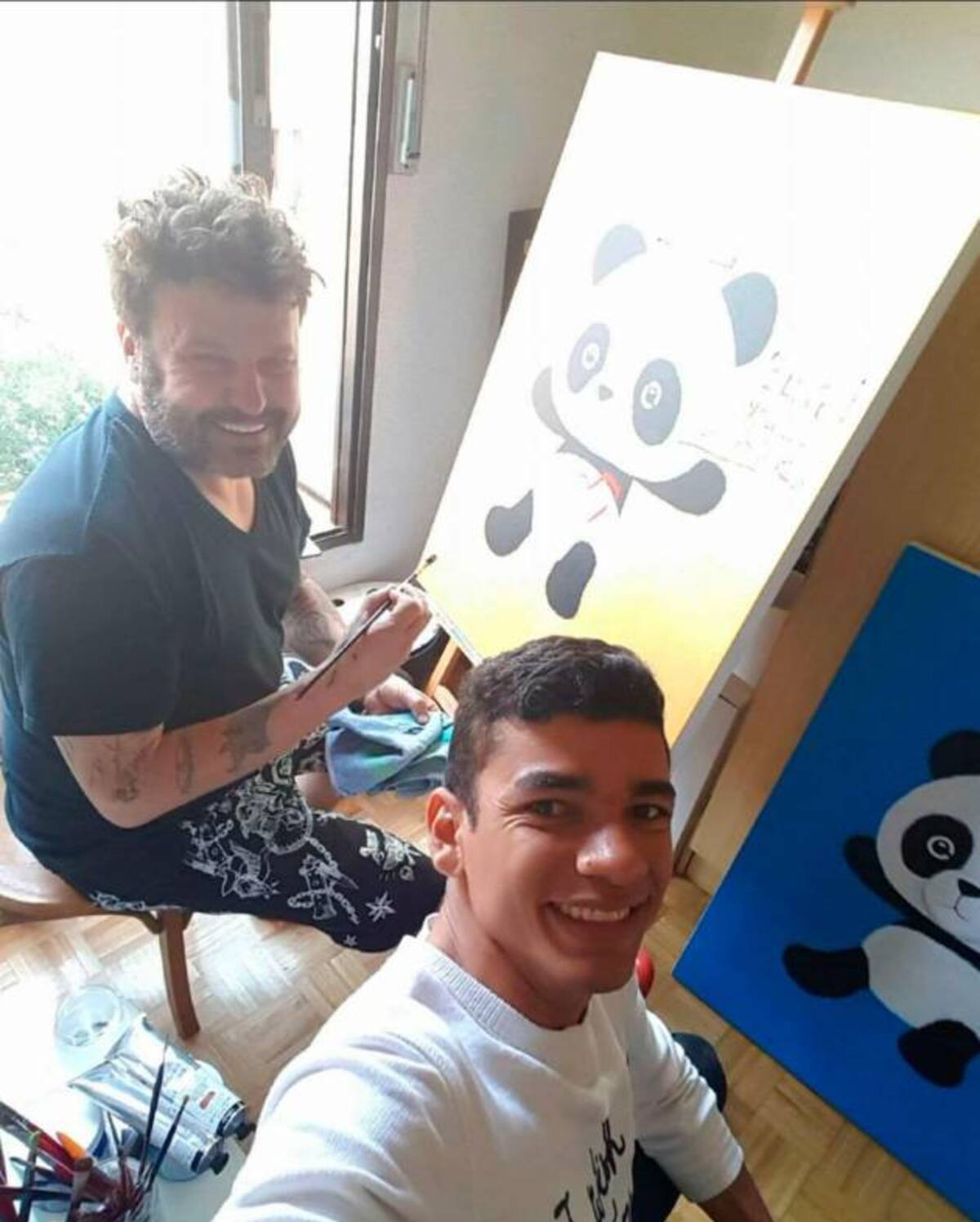 Perkys junto al pintor Domingo Zapata.