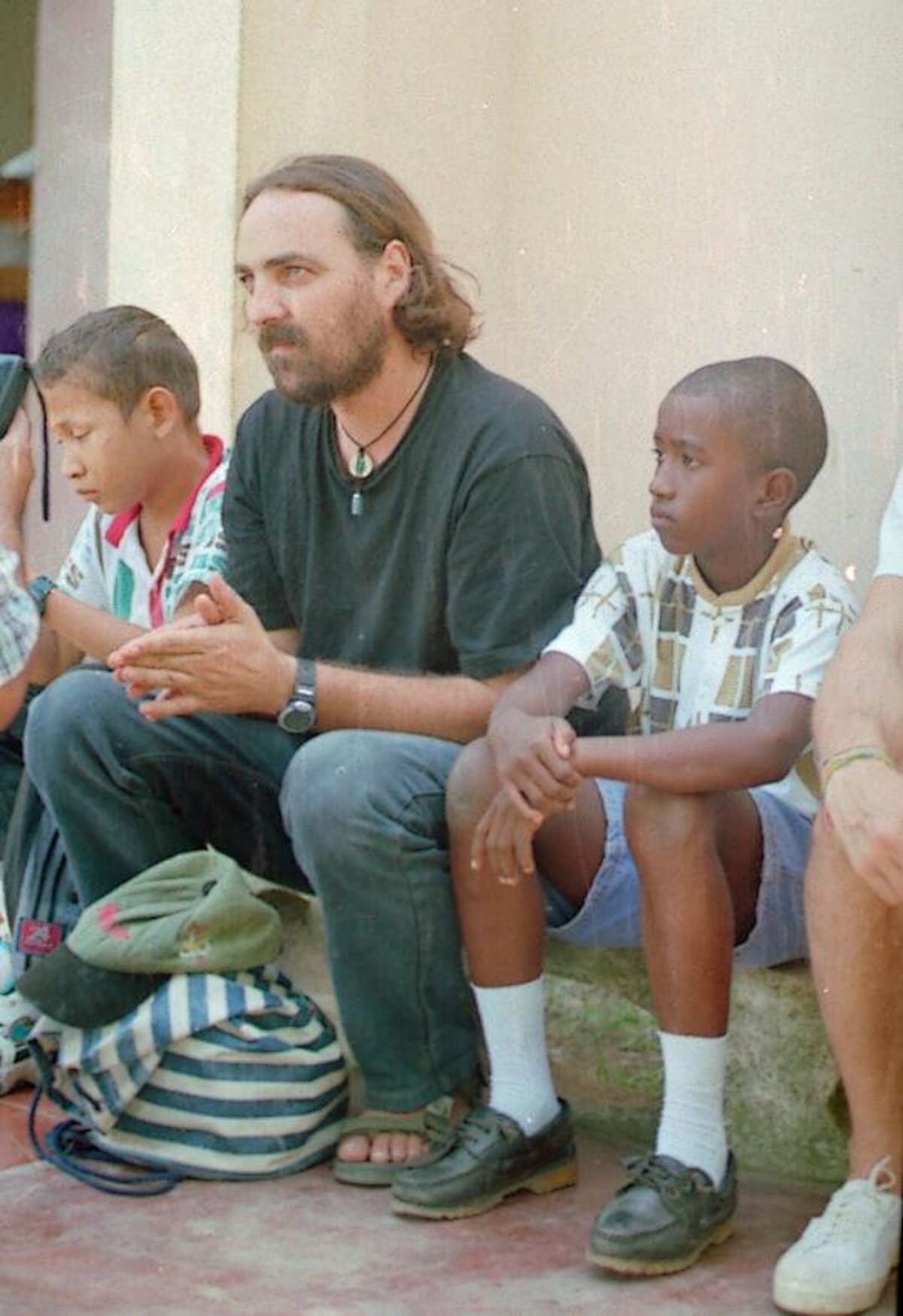 Maurilio Biachi, el entonces sacerdote que dividió la historia de San Pablo en dos, junto a unos niños en 1999.