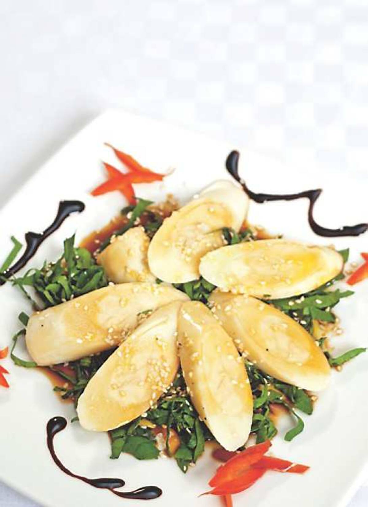 Revuelva muy bien la salsa de soya, el vinagre blanco, el aceite de ajonjolí y el azúcar, y conserve en esta mezcla los palmitos hasta el momento de servir.