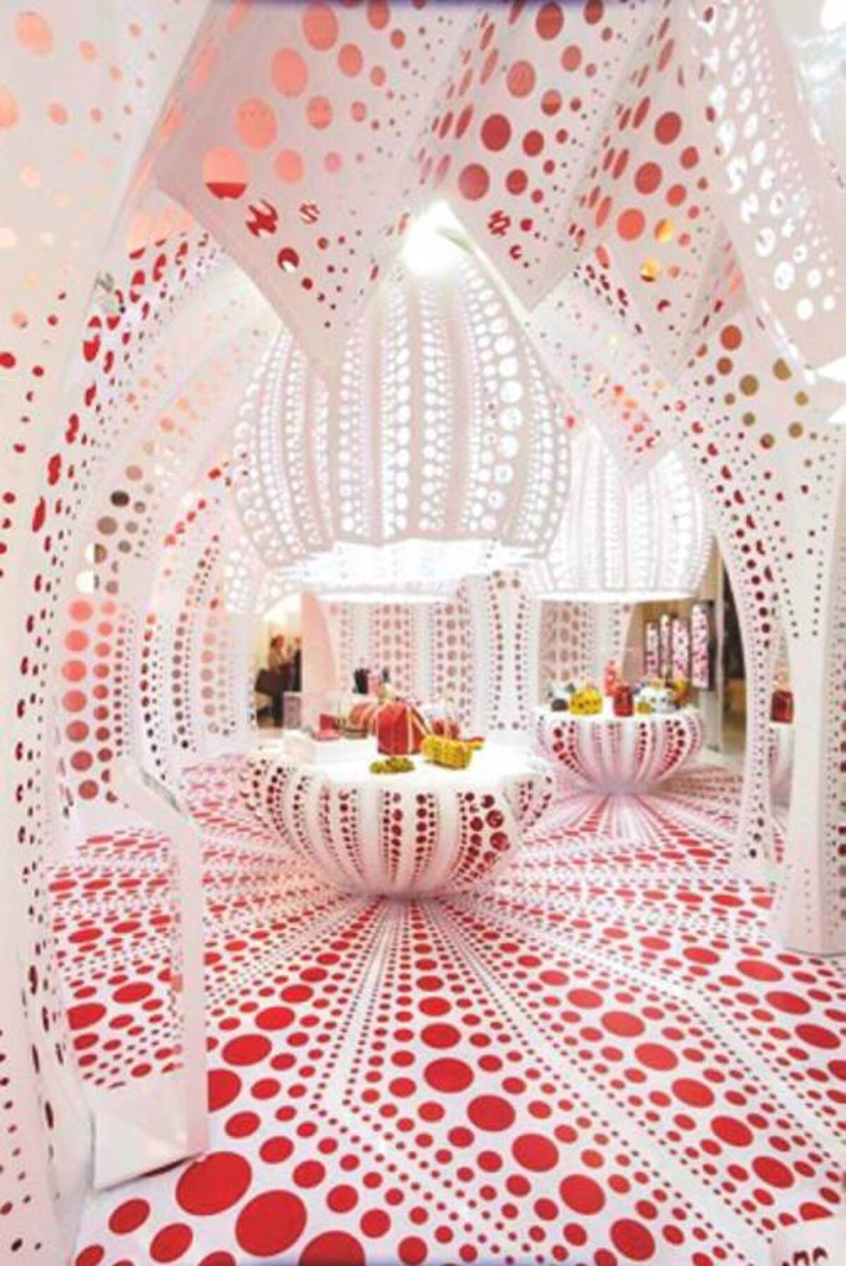 Puntos, puntos y más puntos. De colores, grandes y pequeños, engalanan las tiendas de LV en Nueva York, Hong Kong, Singapur, Tokio, Paris y Londres, que ahora visitan miles de turistas de manera obligada, por considerar estas piezas un ícono de arte contemporáneo, ahora mezclado con lo mejor de la moda.